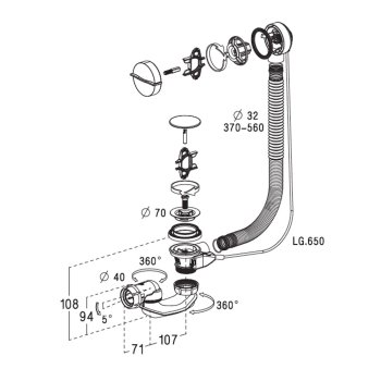 Vaňový sifón v atraktívnom dizajne s chrómovaným krytom a vlisovaným tesnením. Výhody tohto vaňového sifónu sú: jednoduchá inštalácia a jednoduché pripojenie k odpadovej rúrke, samočistiace prevedenie sifónu, otočné kĺbové pripojenie odpadu a jemné smerovanie odtoku v rozsahu 5 ° pre vylúčenie pnutia. Prietočnosť sifónu je 70l/min.