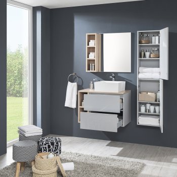 Pre kombináciu s týmito doplnkami je možné využiť aj kúpeľňovú dosku (v niekoľkých veľkostiach) – ideálne ako horné zakončenie samostatne stojacej skrinky alebo v kombinácii s umývadlom na dosku.