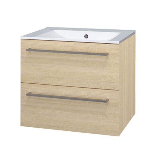 Mereo Bino, kúpeľňová skrinka s keramickým umývadlom 61 cm, dub Sand Barbera