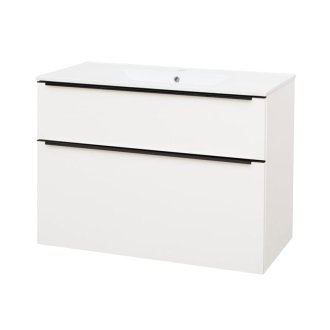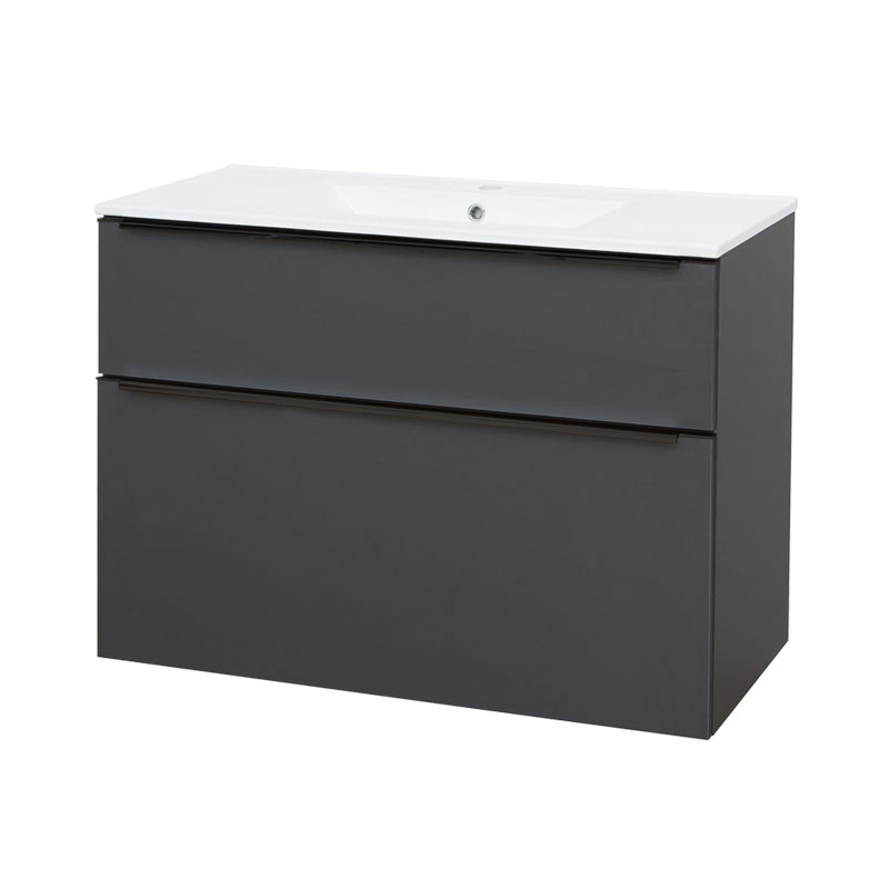 Mereo Mailo, kúpeľňová skrinka s keramickým umývadlom 101 cm, antracit, čierne madlo