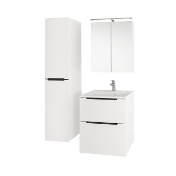 Mereo Mailo, kúpeľňová skrinka s keramickým umývadlom 61 cm, biela, čierne madlo