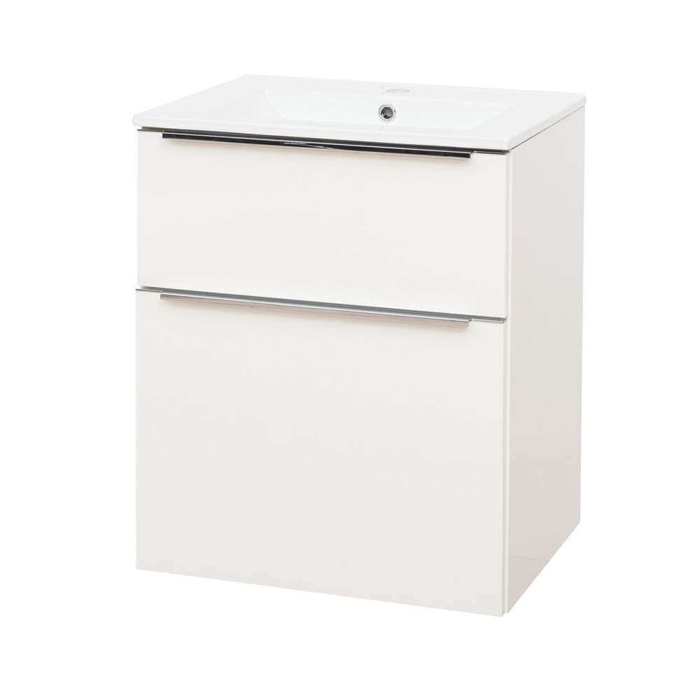Mereo Mailo, kúpeľňová skrinka s keramickým umývadlom 61 cm, biela, chróm madlo
