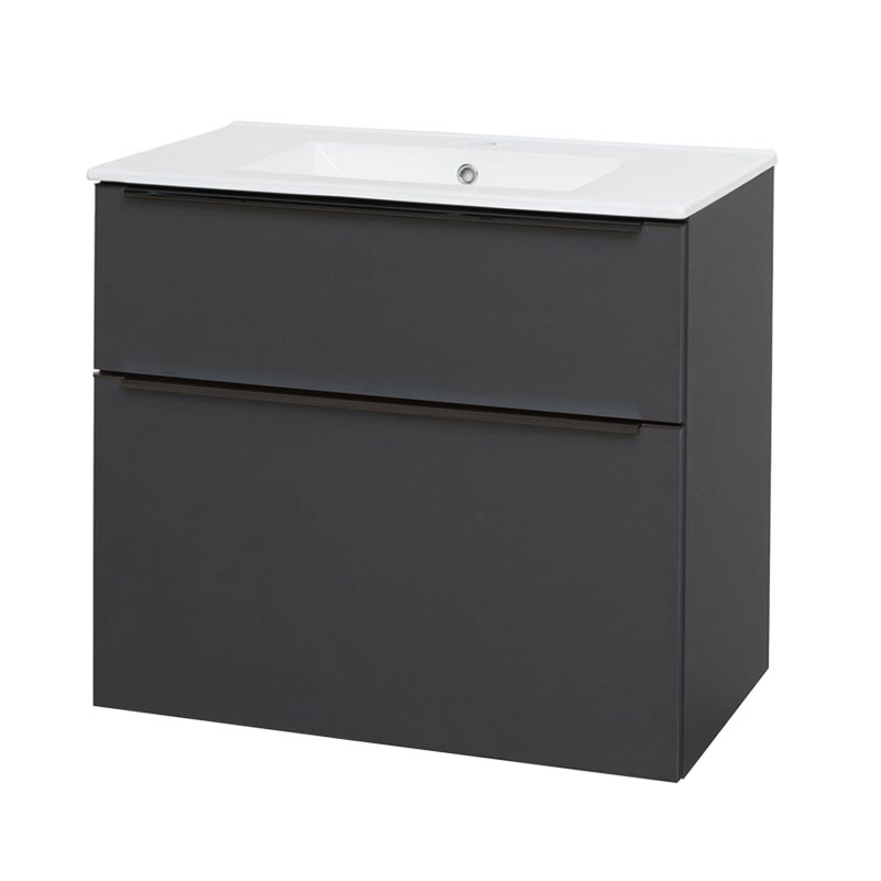Mereo Mailo, kúpeľňová skrinka s keramickým umývadlom 81 cm, antracit, čierne madlo