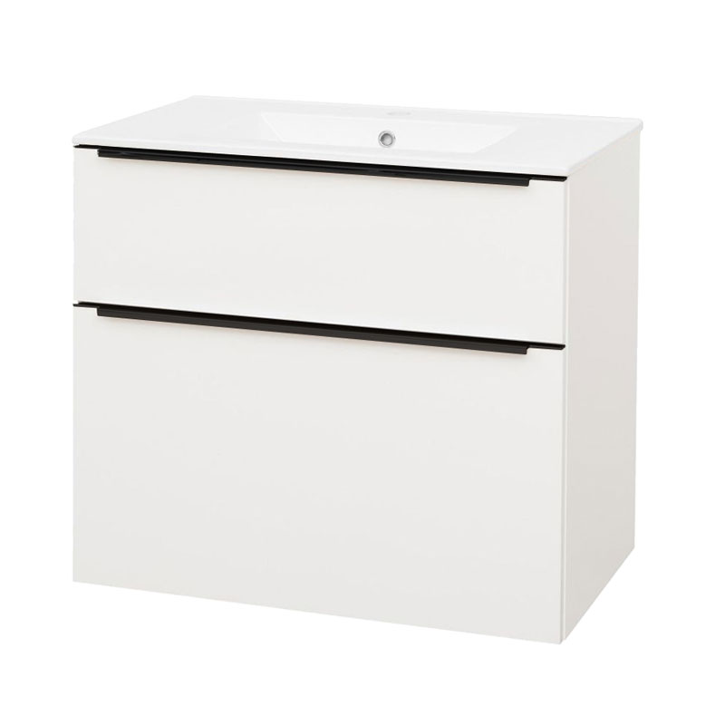 Mereo Mailo, kúpeľňová skrinka s keramickým umývadlom 81 cm, biela, čierne madlo