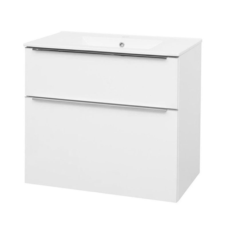 Mereo Mailo, kúpeľňová skrinka s keramickým umývadlom 81 cm, biela, chróm madlo