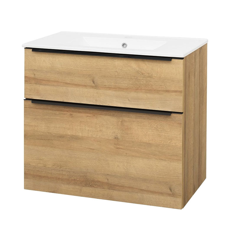 Mereo Mailo, kúpeľňová skrinka s keramickým umývadlom 81 cm, dub Riviera, čierne madlo
