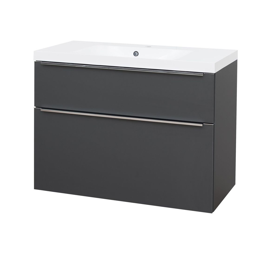 Mereo Mailo, kúpeľňová skrinka s umývadlom z liateho mramoru 101 cm, antracit, chróm madlo