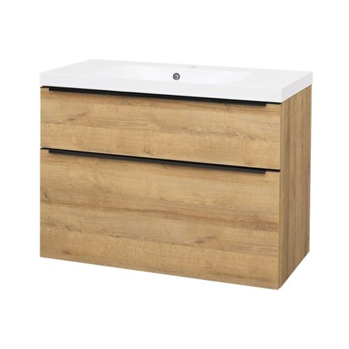 Mereo Mailo, kúpeľňová skrinka s umývadlom z liateho mramoru 101 cm, dub Riviera, čierne madlo
