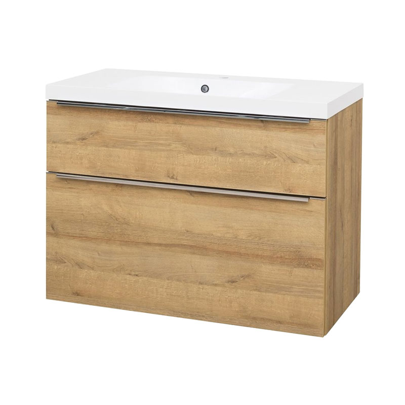 Mereo Mailo, kúpeľňová skrinka s umývadlom z liateho mramoru 101 cm, dub Riviera, chróm madlo