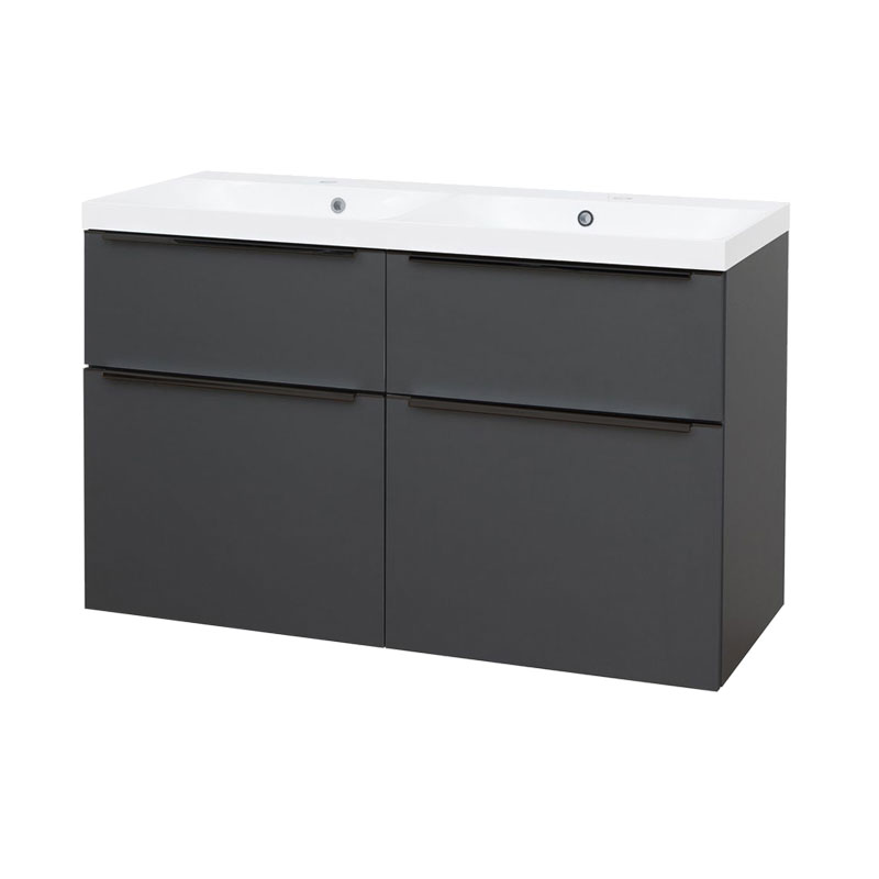 Mereo Mailo, kúpeľňová skrinka s umývadlom z liateho mramoru 121 cm, antracit, čierne madlo
