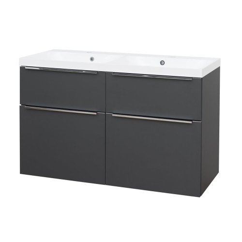 Mereo Mailo, kúpeľňová skrinka s umývadlom z liateho mramoru 121 cm, antracit, chróm madlo