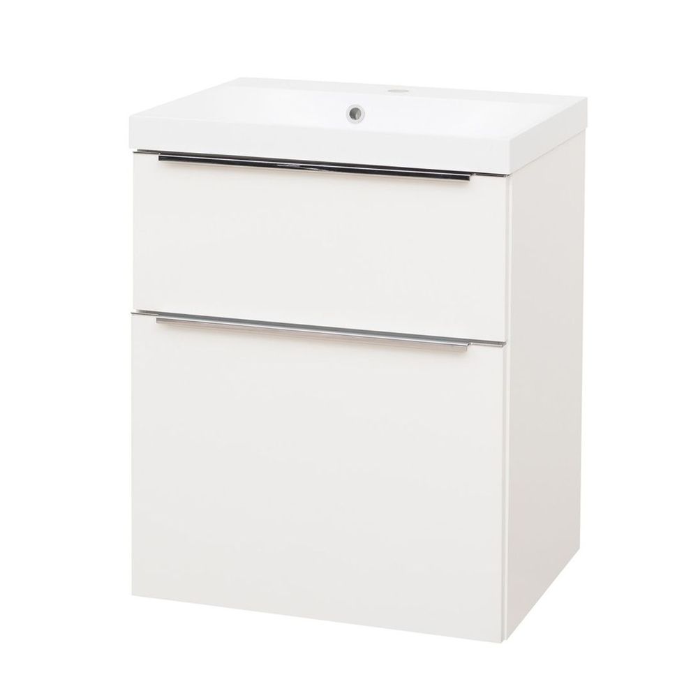 Mereo Mailo, kúpeľňová skrinka s umývadlom z liateho mramoru 61 cm, biela, chróm madlo