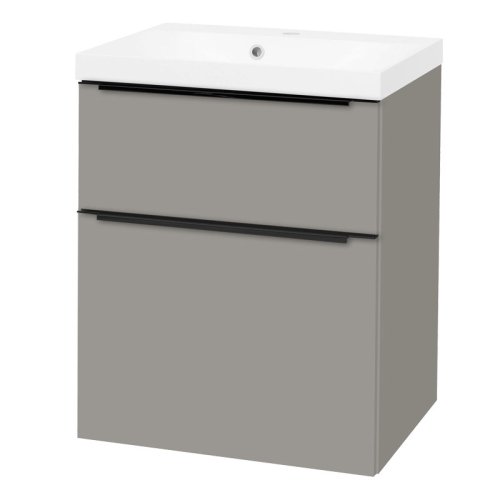 Mereo Mailo, kúpeľňová skrinka s umyvadlom z liateho mramoru 61 cm, šedá mat, čierne madlo