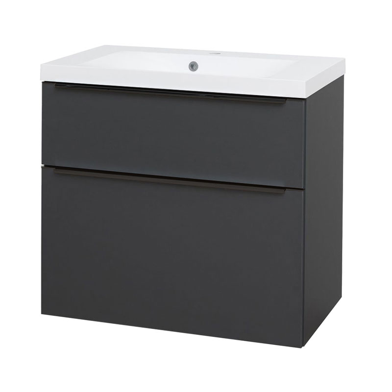 Mereo Mailo, kúpeľňová skrinka s umývadlom z liateho mramoru 81 cm, antracit, čierne madlo