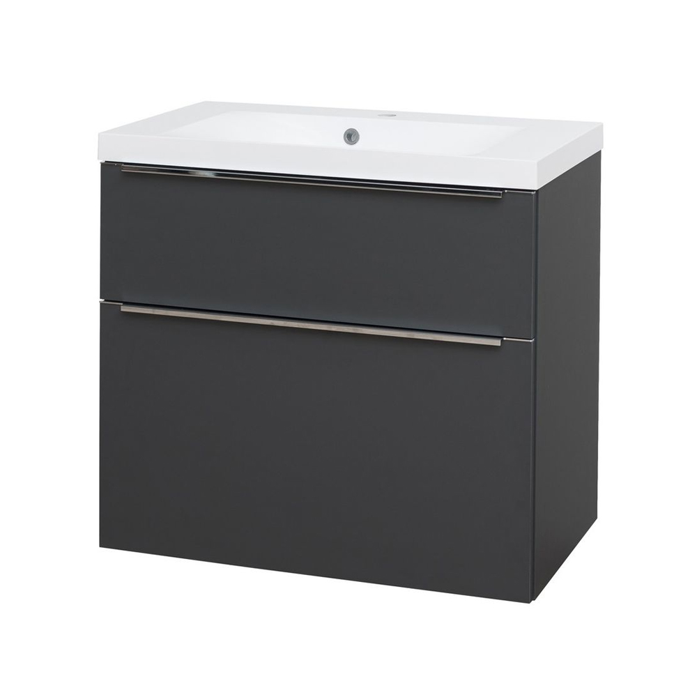 Mereo Mailo, kúpeľňová skrinka s umývadlom z liateho mramoru 81 cm, antracit, chróm madlo