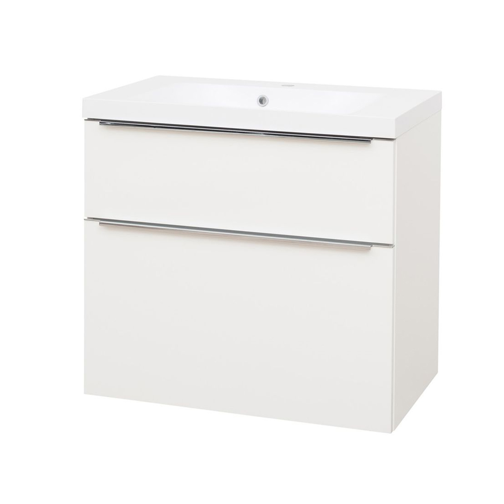 Mereo Mailo, kúpeľňová skrinka s umývadlom z liateho mramoru 81 cm, biela, chróm madlo