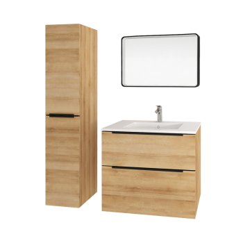 Mereo Mailo, kúpeľňová skrinka vysoká 170 cm, dub Riviera, čierne madlo