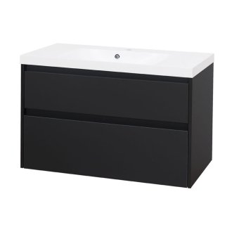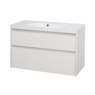 Mereo Opto, kúpeľňová skrinka s umývadlom z liateho mramoru 101 cm, biela/dub Riviera Riviera