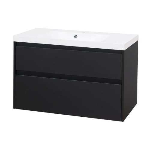 Mereo Opto, kúpeľňová skrinka s umývadlom z liateho mramoru 101 cm, čierna supermat