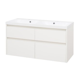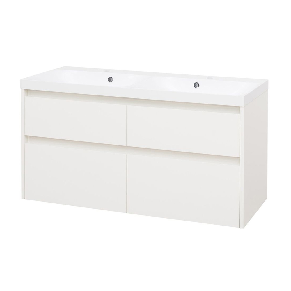 Mereo Opto, kúpeľňová skrinka s umývadlom z liateho mramoru 121 cm, biela