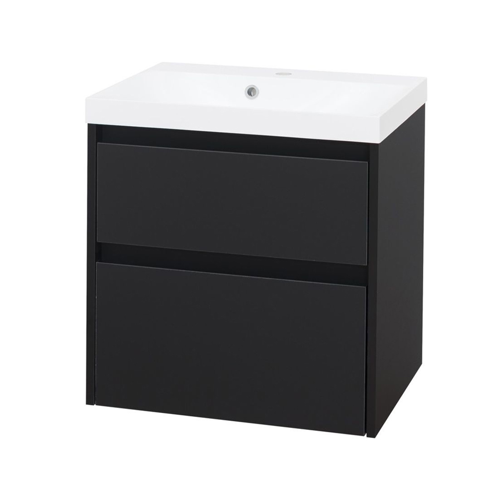 Mereo Opto, kúpeľňová skrinka s umývadlom z liateho mramoru 61 cm, čierna