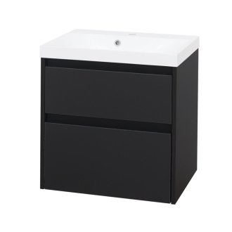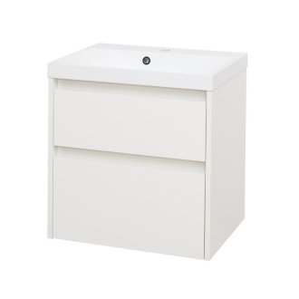 Mereo Opto, kúpeľňová skrinka s umývadlom z liateho mramoru 61 cm, biela/dub Riviera Riviera