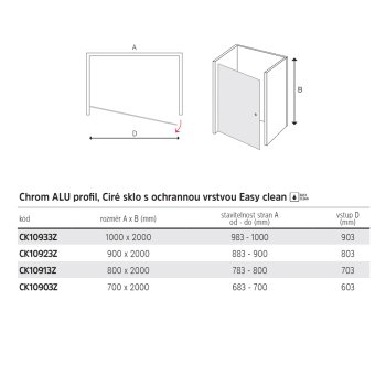 - Dlhá životnosť a ľahká údržba: Bezpečnostné sklo s hrúbkou 6 mm je opatrené povrchovou úpravou Easy Clean, ktorá využíva nanotechnológiu. Táto vodoodpudivá vrstva zabraňuje usadzovaniu nečistôt a vodného kameňa, takže sklo zostáva dlhšie čisté a ľahko sa udržuje. Úprava je zároveň odolná voči bežným čistiacim prostriedkom používaným na okná a sklenené plochy – viac sprchovania, menej drhnutia.
