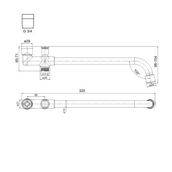 Ramienko pre bytové jadro s pripojovacou maticou 3/4 "a 1/2" vývodom na sprchovú hadicu o celkovej dĺžke 320 mm. Ramienko je vyrobené z kvalitnej pochrómovanej mosadze. Ramienko je určené pre batérie z rád Sonáta, Zuna a Lila.Parametre