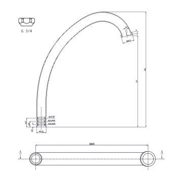 Ramienko rúrkové s pripojovacou maticou 3/4"celkovou výškou 216 mm. Ramienko je vyrobené z kvalitnej pochrómovanej mosadze. Ramienko je určené pre nízkotlakové batérie CBS201015M.
