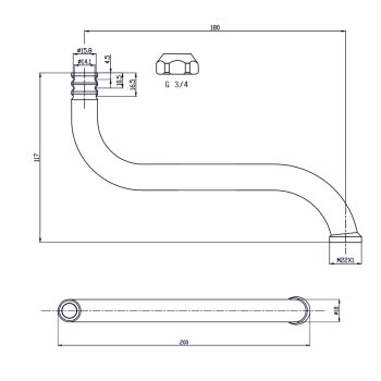 Ramienko rúrkové s pripojovacou maticou 3/4" o celkovej dĺžke 180 mm. Ramienko je vyrobené z kvalitnej pochrómovanej mosadze. Ramienko je určené pre nízkotlakové batérie CBE301020M, CBE301026M, CBS602008M, CBS602011M.