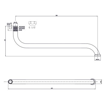 Ramienko rúrkové s pripojovacou maticou 1/2" o celkovej dĺžke 300 mm. Ramienko je vyrobené z kvalitnej pochrómovanej mosadze. Ramienko je určené pre nízkotlakové batérie CBS301003M.