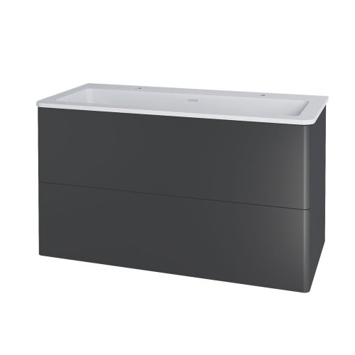 Siena, kúpeľňová skrinka s umývadlom z liateho mramoru, 1010x563x465 mm, spodná, 2 zásuvky, push-open systém, antracit mat. Umyvadlo pro 2 baterie a 1 výpusť. viac