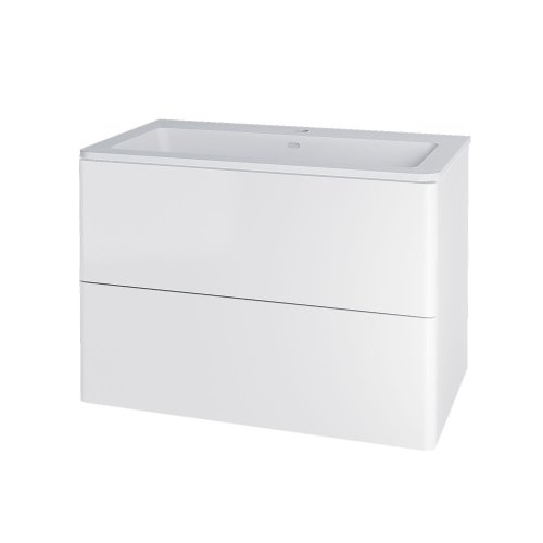 Mereo Siena, kúpeľňová skrinka s umývadlom z litého mramoru 81 cm, biela lesk