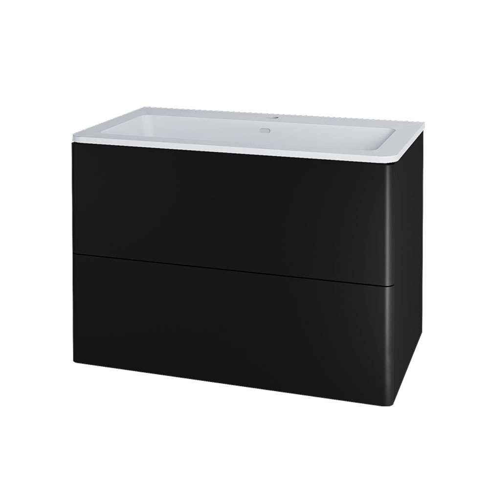 Mereo Siena, kúpeľňová skrinka s umývadlom z litého mramoru 81 cm, čierna mat