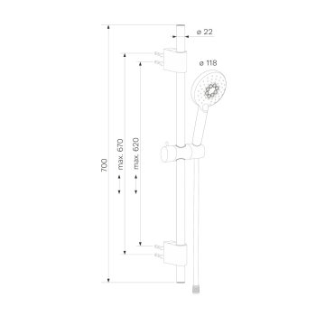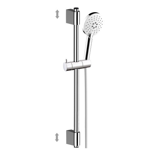 Sprchová súprava sa vyznačuje moderným dizajnom, vysokou variabilitou a predovšetkým umožňuje takmer ľubovoľnú kombináciu s príslušenstvom sprchového programu. Sprchový set obsahuje ručnú sprchovú hlavicu s jednou polohou, nastaviteľný držiak a šedostriebornú hadicu s plastovým potahom s dĺžkou 150 cm a systémom zabraňujúcim prekrúteniu. Hadica sa montuje medzi batériu a sprchovú hlavicu.Vďaka posuvnému jazdcovi si môžete výšku sprchy nastaviť podľa potreby. Kotviace držiaky nie sú pevne spojené s tyčou a je teda možné je na tyči posunúť a využiť dier po predchádzajúcom držiaku vo Vašej kúpeľni.