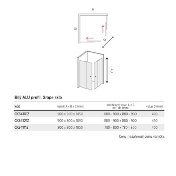 Sprchové kúty série Kora, vnášajú do ekonomickej triedy nový rozmer kvality. Hrúbka bezpečnostného skla je 5 mm, v dizajne Grape, s profilmi v bielej farbe. Sprchovací kút je vybavený posuvnými dverami, ktoré majú ložiskové pojazdy s excentrickým osadením (vďaka tomu máte možnosť perfektného nastavenia). Dorazy zaisťujú minimálny náraz pri otváraní a zatváraní sprchovacieho kúta.Spodné pojazdy umožňujú odklopenie posuvných časti sprchovacieho kúta a vyčistenie bežne nedostupných miest. Tesnosť medzi pevnou a posuvnou časťou je zaistená silikónovými lištami.