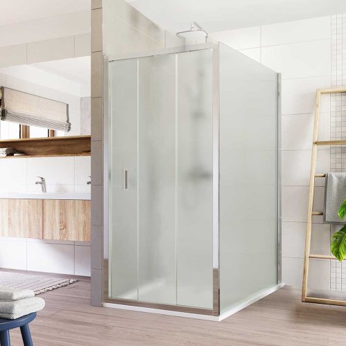 Mereo Sprchovací kút, Lima, obdĺžnik, trojdielne, zasúvací, 80x90 cm, chróm ALU, sklo Point