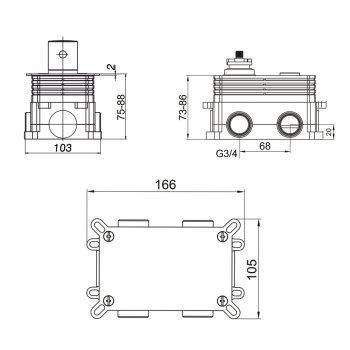 Mereo Termostatická podomietková tlačidlová batéria - 3-cestná - bez krytu